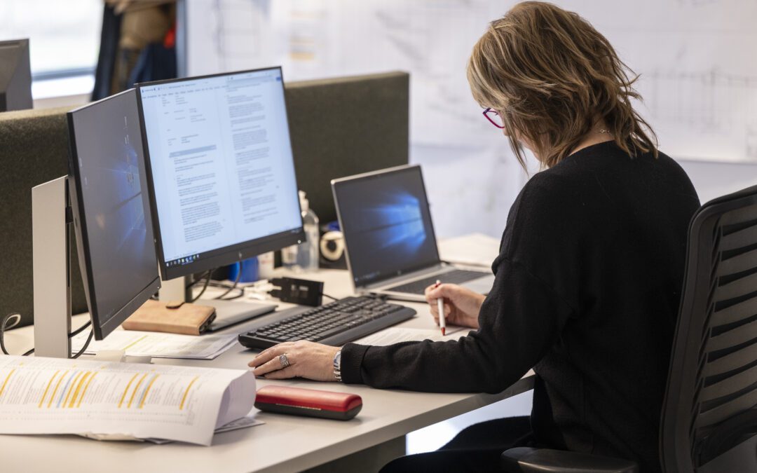 Monique’s werkdagen zijn afwisselend. ‘Ik probeer rond 7.45 uur te beginnen, maar dat is geen harde regel. Het belangrijkste is dat je je werk goed doet. Als ik bij een project langs ga, zit ik soms al om zes uur in de auto.’ Naast overleggen met opdrachtgevers en het bijwonen van bouwvergaderingen, werkt ze aan projectplannen, VTW’s en het aanvragen van offertes en technisch‐inhoudelijke zaken, zoals CE‐markeringen. ‘Er is geen strakke rolverdeling; mijn werk loopt van voorbereidend tot coördinerend. Juist die variatie maakt het leuk.’