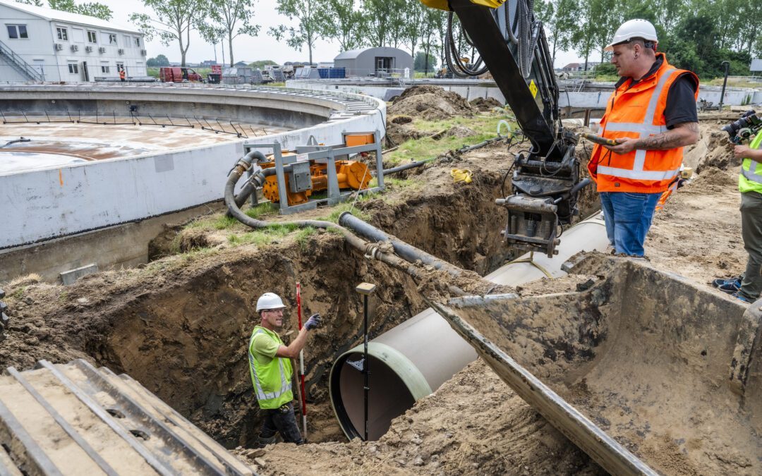 Zijn werkdag start om 6.00 uur in de keet. ‘Nu is dat op locatie Oijen, bij de rioolzuiveringsinstallatie. Ik zorg dat materialen klaarstaan, loop tekeningen na en meet in. Alles zodat de jongens meteen aan het werk kunnen.’ Door de slijtage in zijn voeten werkt hij soms thuis verder. ‘Soms schiet er iets verkeerd en raakt een spier of zenuw klem. Waardoor hij zijn schoenen niet meer aan kan. ‘Werken zonder werkschoenen kan niet, dus rijd ik eerst naar huis in Oss, tien minuten verder. Thuis werk ik door aan rapportages en planning. De monteurs kunnen me altijd bellen. Ik ben blij met de flexibiliteit; zo kan ik mijn werk goed blijven doen.’