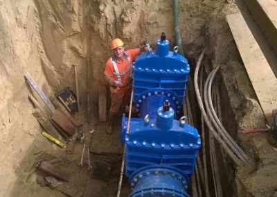 De afsluiters in de transportleidingen bevinden zich op maximaal 3 meter onder het maaiveld en staan bij normale bedrijfsvoering onder een druk van 5 bar. Een aantal inbouwingen dienen ’s nachts uitgevoerd te worden, gezien het feit dat de behoefte aan water op dit moment van de dag het laagst is. Om het proces vloeiend te laten verlopen, is een duidelijk, vooraf afgestemde communicatie tussen opdrachtgever een aannemer, van wezenlijk belang.
