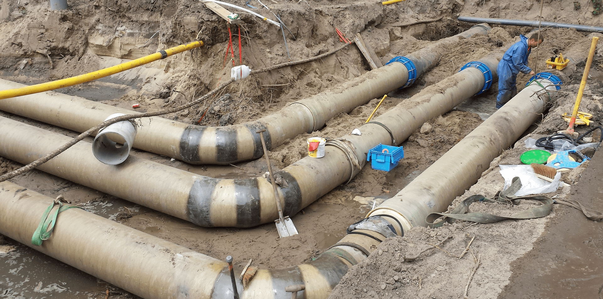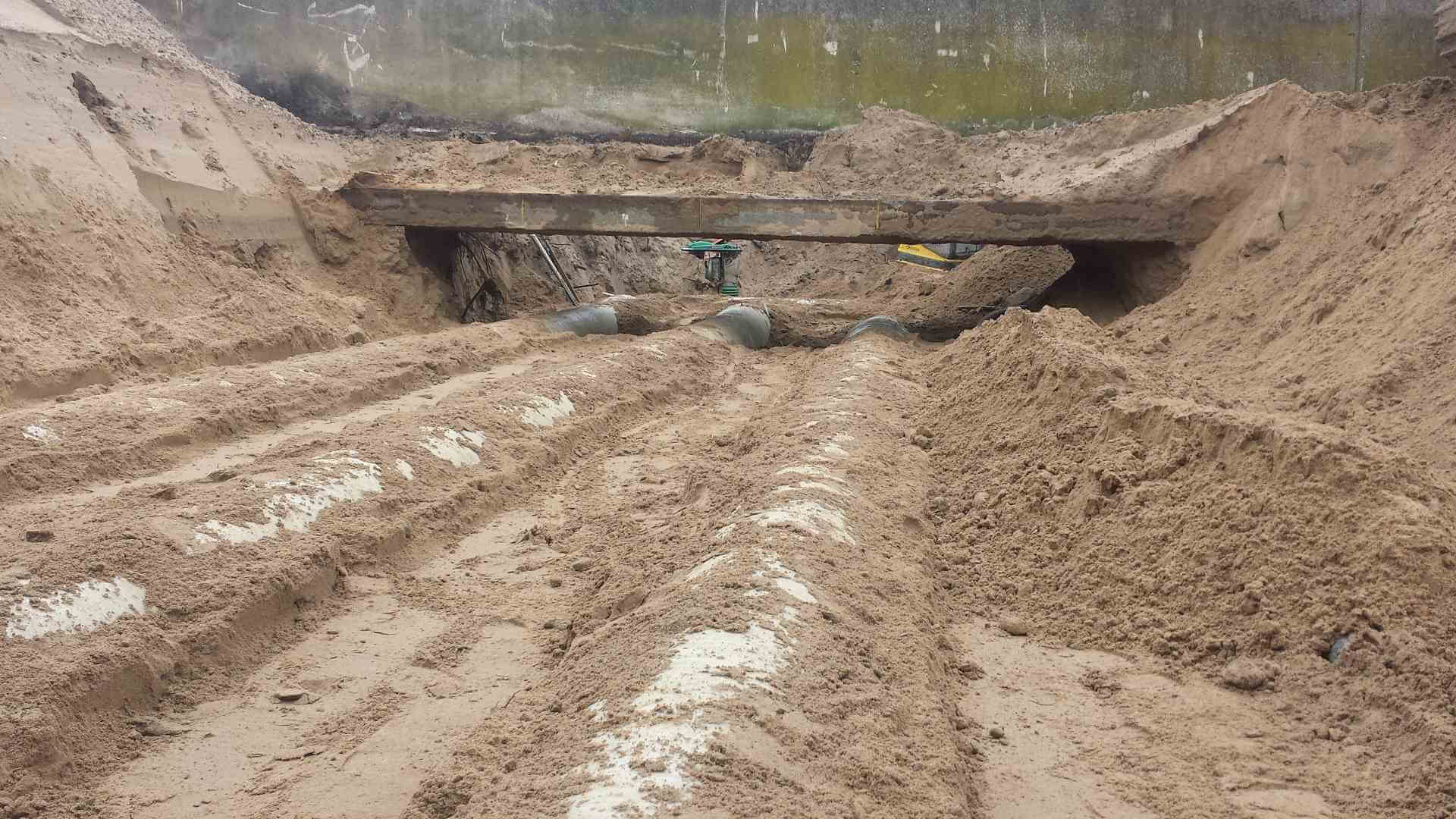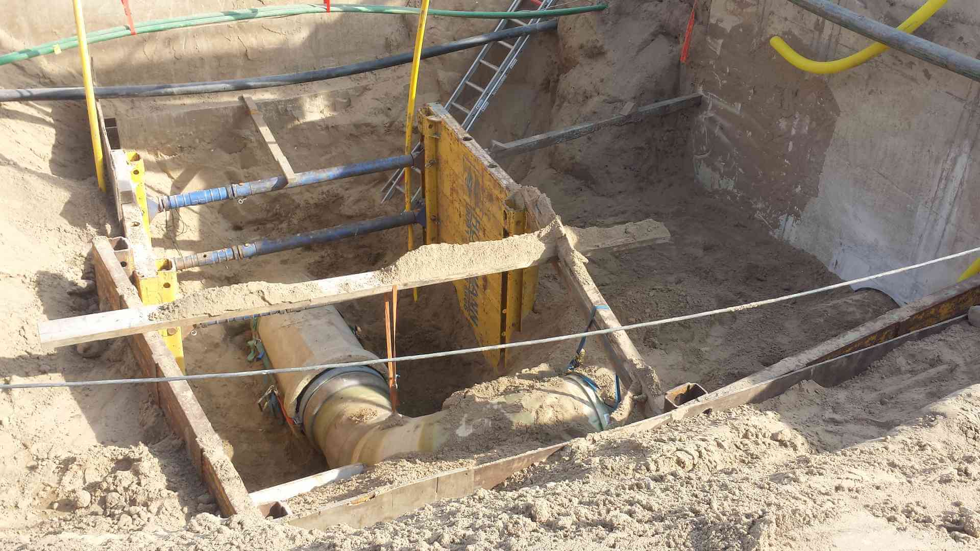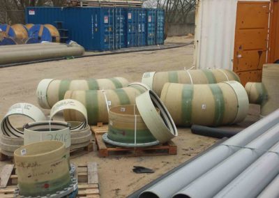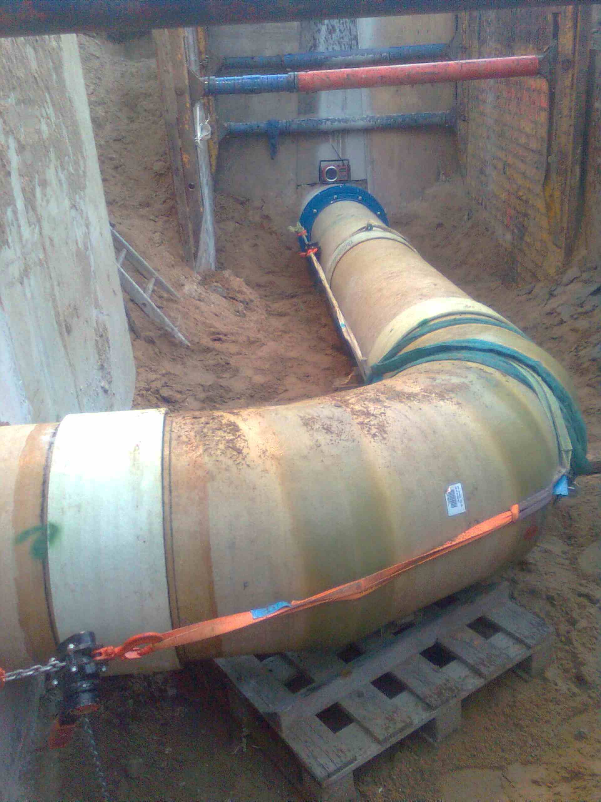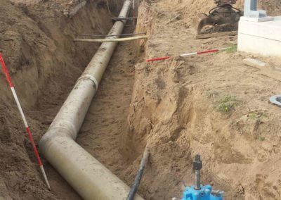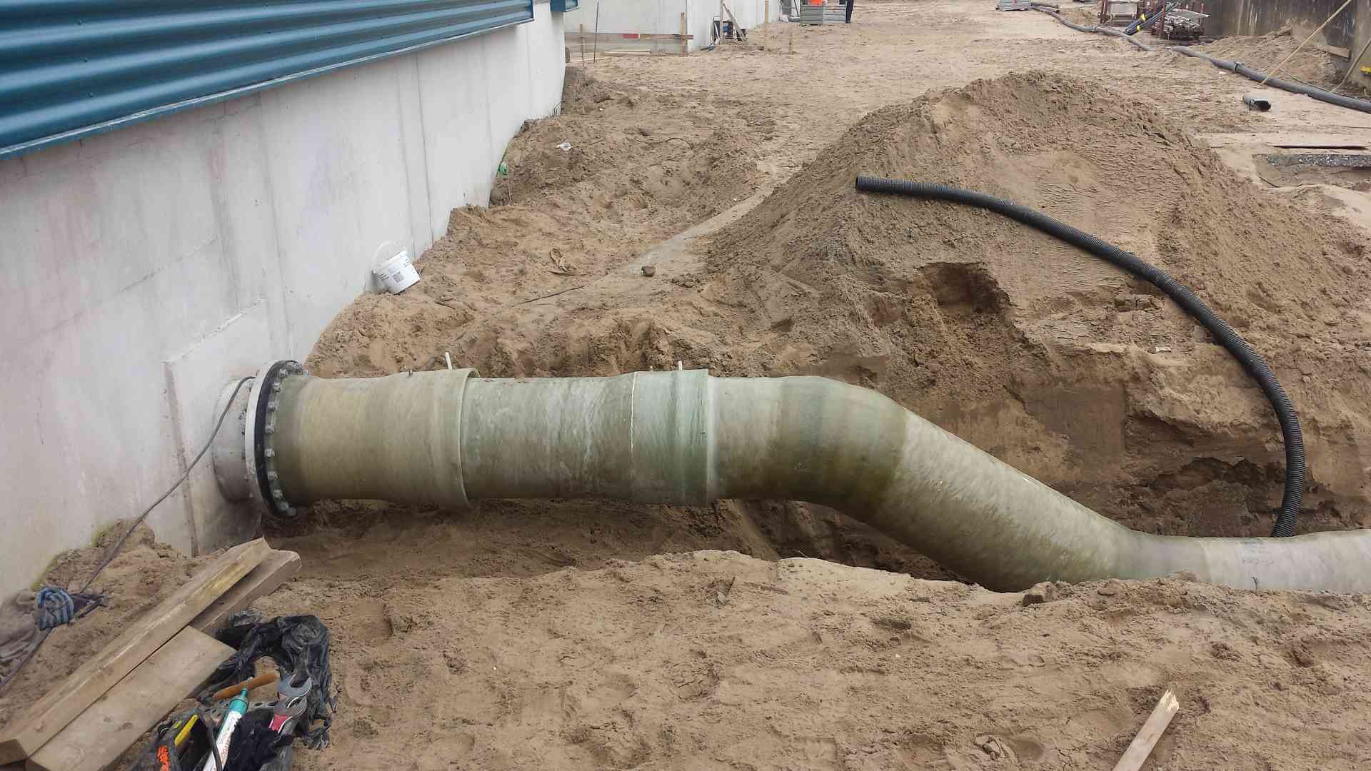 Het project omvat het leveren, aanbrengen en beproeven van 520 m’ GVK persleidingen 500 mm SN5000/PN6; 125 m’ GVK influentleidingen Ø 800 mm, SN5000/ PN1; 100 m’ GVK hittebestendige luchtleidingen Ø 500 mm / PN6; 100 m’ GVK slibleidingen Ø600/500/400 mm, SN5000/ PN1; 360 m’ PE persleidingen Ø 160/090 mm, SDR17 / PN10; 150 m’ PE slibleidingen Ø 110/Ø 90 mm SR 17 / PN10; 200 m’ PE chemicalienleidingen Ø 63 mm SDR 17/PN10; 500 m’ diverse PE proces-, drink- en bedrijfswaterleidingen Ø90/063/032 mm SDR 17/PN10 en 300 m’ diverse PVC terreinrioleringsleidingen Ø250/0200/0160/Ø 110 mm SNB. Daarnaast is met behulp van flexibele overgangskoppelingen op drie stuks bestaande AC leidingen Ø 555 mm aangesloten en op twee stuks bestaande betonleidingen Ø 600 mm. Tenslotte is er een rioolgemaal gerealiseerd.