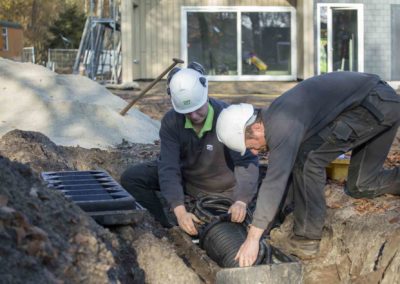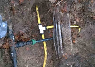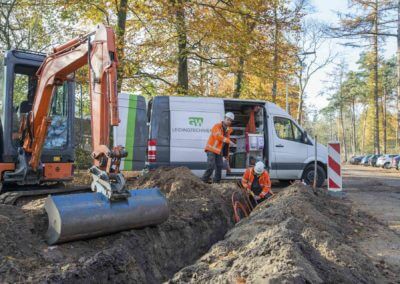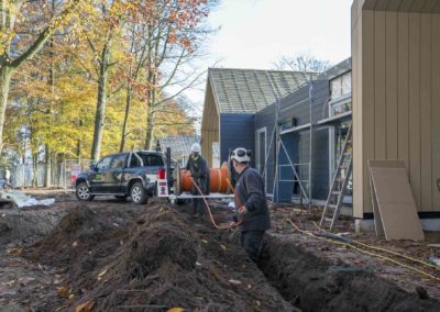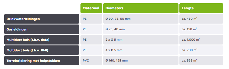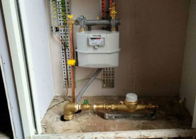 Daarnaast zijn er acht stuks huisaansluitingen gerealiseerd. Deze aansluitingen zijn onder druk op de hoofdleiding gas en water aangeboord. In de meterkast zijn de watermeters Qn6/2,5 en gasmeters G4 afgemonteerd.