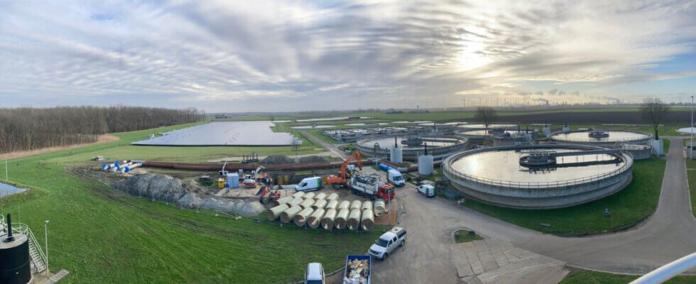 De opdrachtgever is enorm tevreden over de uitvoering en het verloop van de werkzaamheden. Het afvalwater van +/-15000m² per uur loopt nu via de 3 tijdelijke leidingen van 1000 mm per leiding. De tijdelijke leidingen liggen over het maaiveld naar de waterzuivering (zie de fantastische overzichtsfoto). In de komende periode gaat GW Leidingtechniek BV aan de slag met de bypass van de influentleiding en het hoofdverdeelwerk.