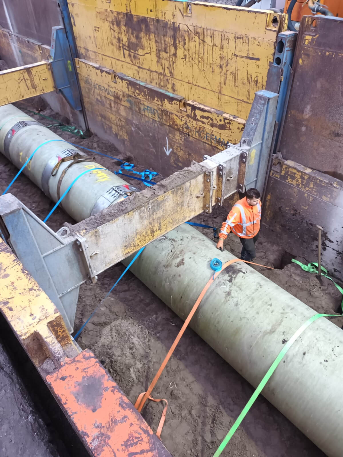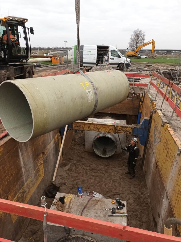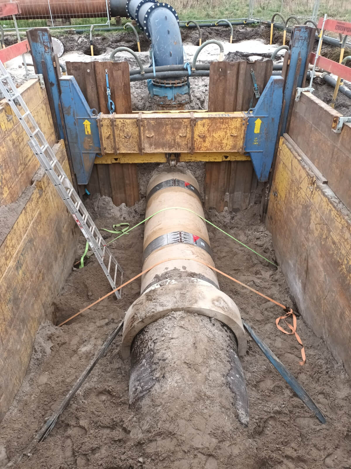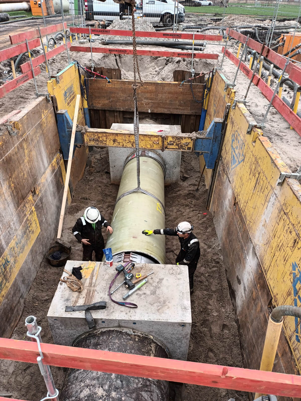 De voorbereidingen voor het relinen van de aangetaste betonbuis begonnen in november 2023. GW Leidingtechniek BV zorgde voor het leggen van rijplaten, installeren van de TPI (tijdelijke pompinstallatie), het plaatsen van de bemaling en het vrijgraven van 3 rioolbuizen van 1200 mm tot een diepte van 3,5 meter, inclusief het plaatsen van kisten. Hierna ging opdrachtgever Aarsleff aan de slag met het relinen van de aangetaste betonbuis, wat met succes werd afgerond halverwege februari 2024.