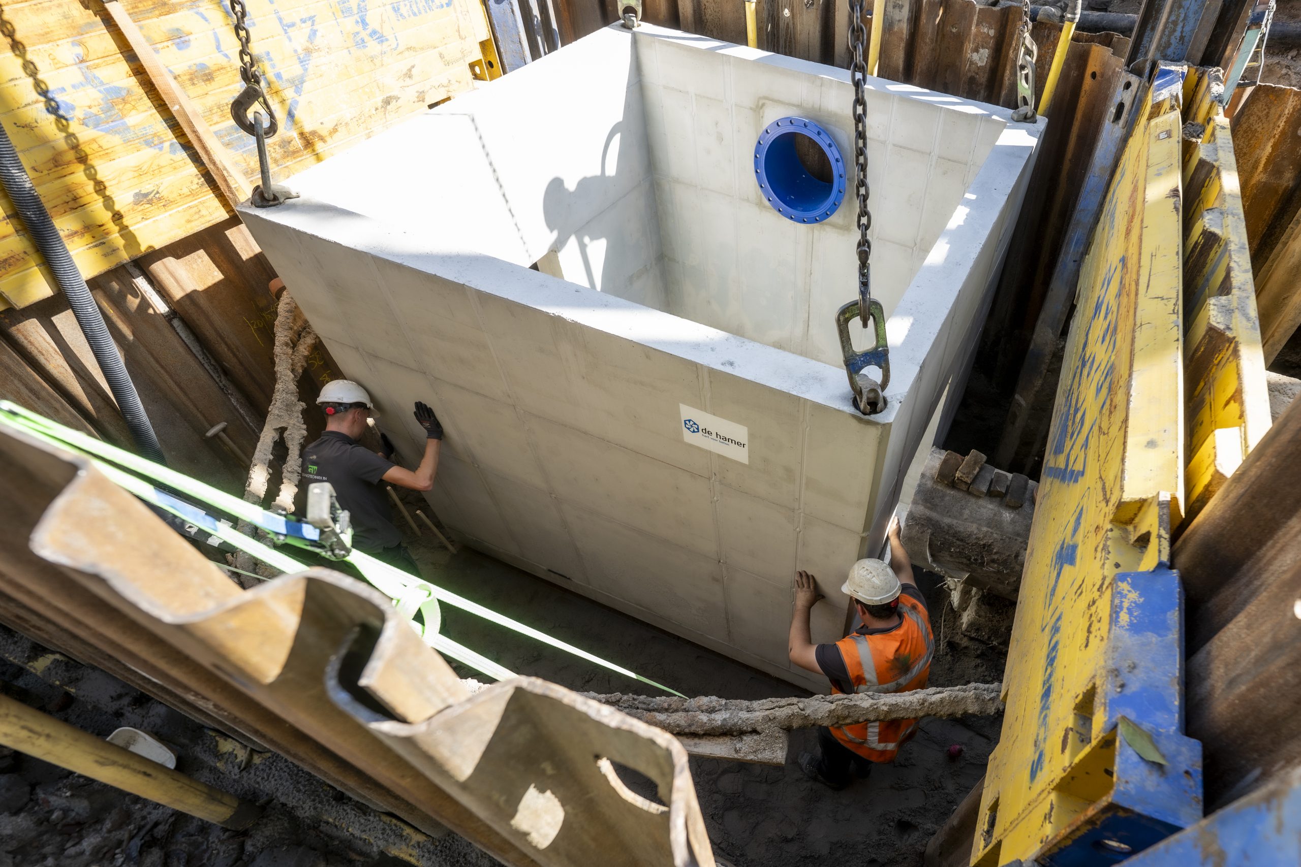 Werken midden in het drukke centrum van Utrecht bracht de nodige technische en logistieke uitdagingen met zich mee: beperkte werkruimte, een ondergrond vol kabels en leidingen, complexe planning en veel omgevingsfactoren. Dankzij de prettige en constructieve samenwerking met de Gemeente Utrecht, ProRail en de Jaarbeurs konden deze uitdagingen effectief worden aangepakt. Een bijzonder aspect van het project was de inzet van een hal van de Jaarbeurs om de HDPE-leiding te lassen en uit te leggen voorafgaand aan het intrekken.