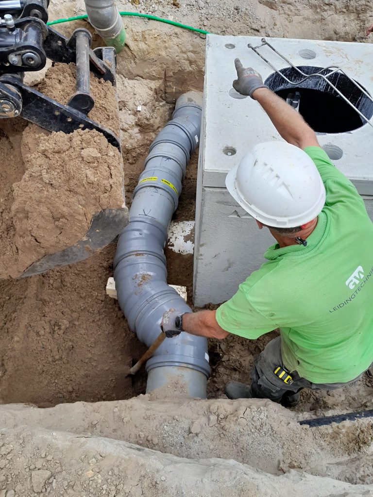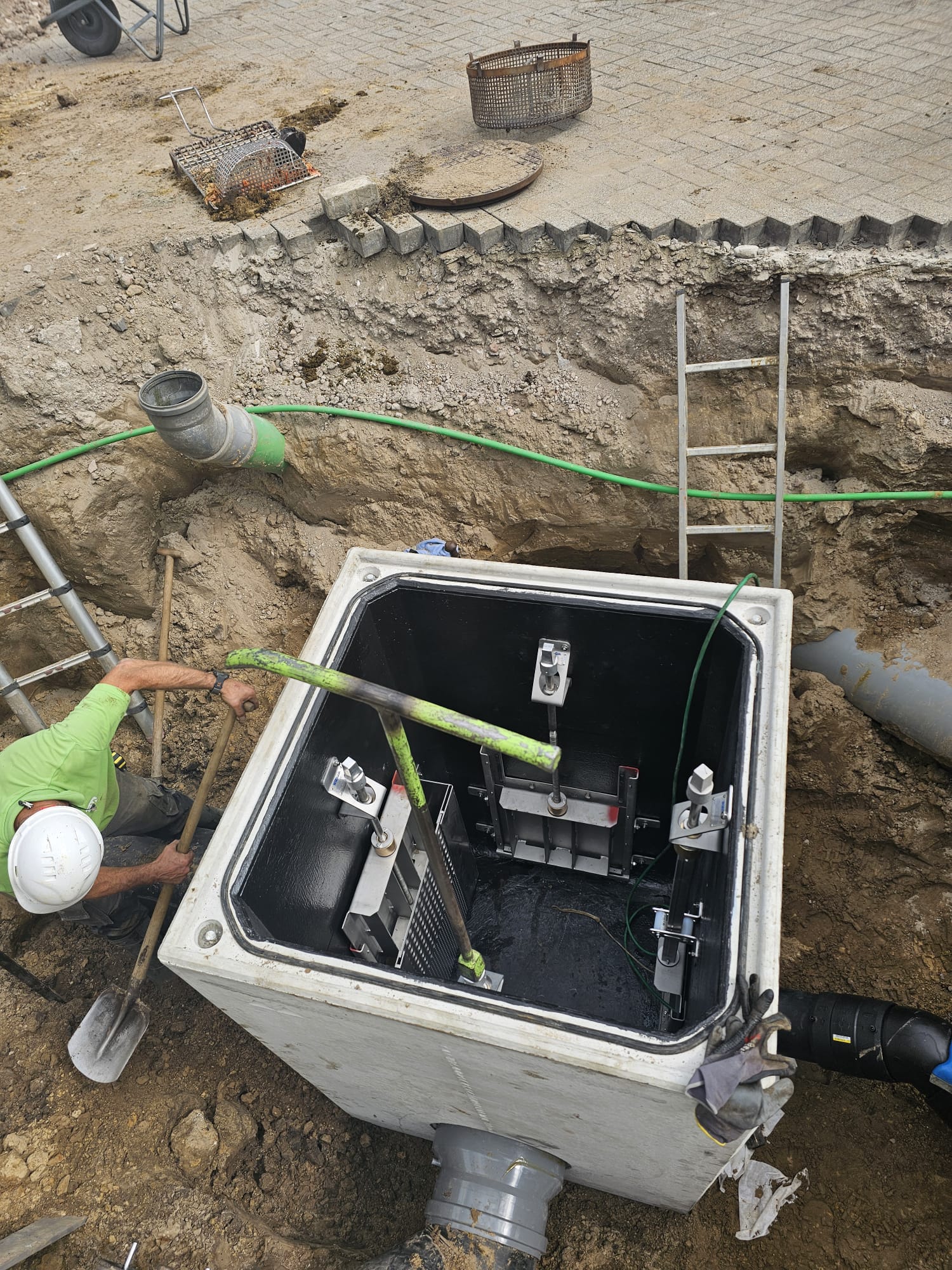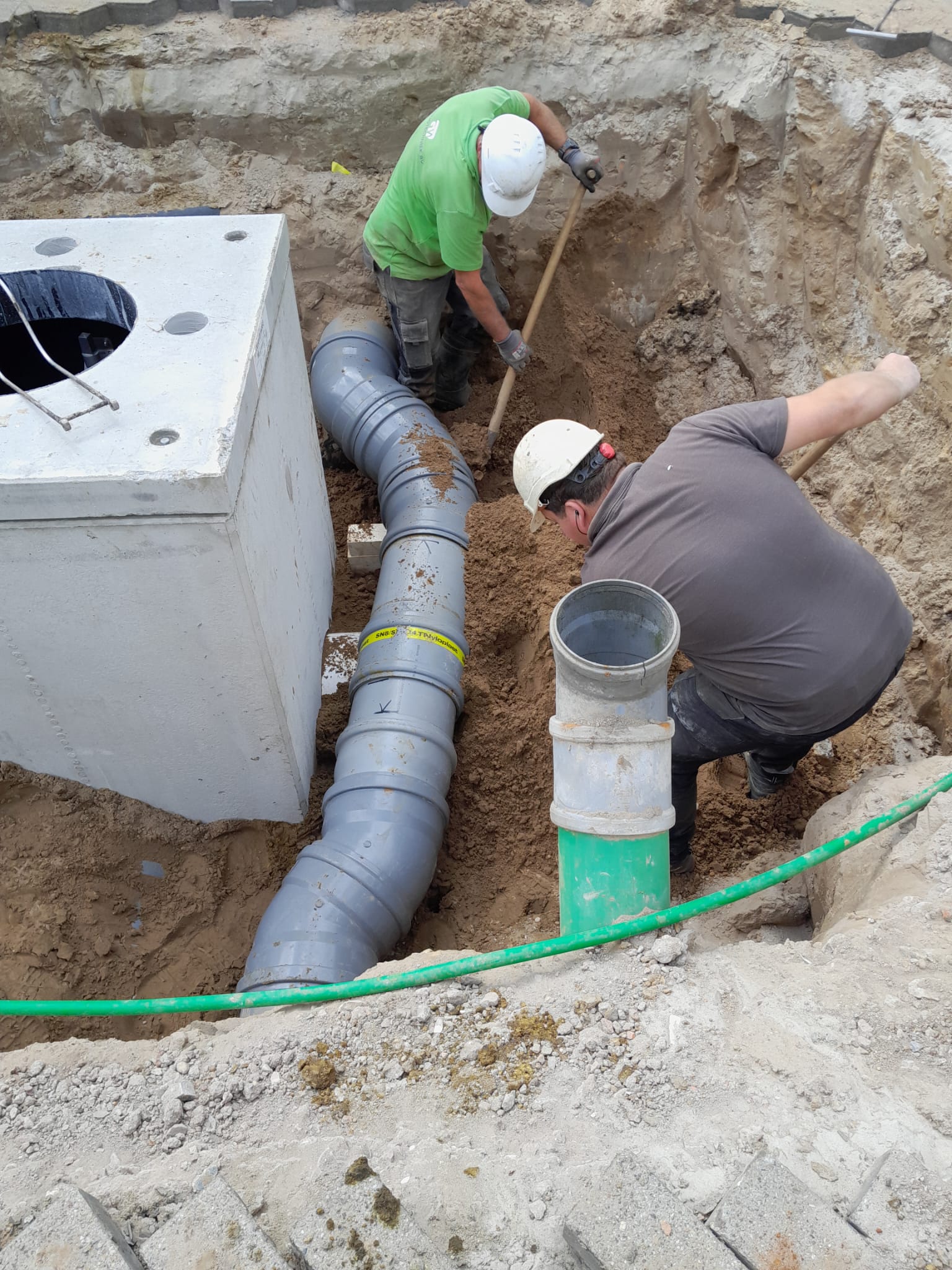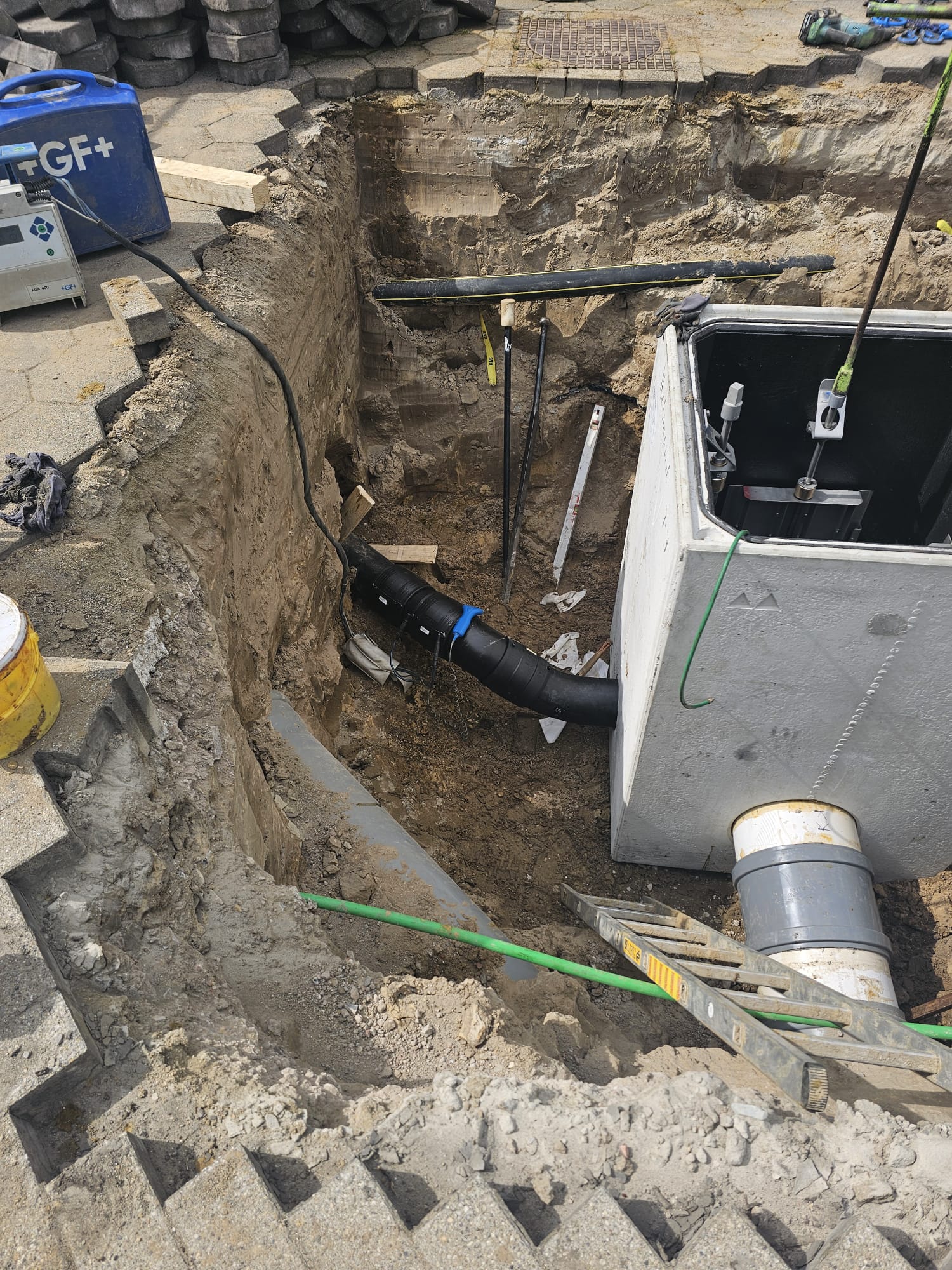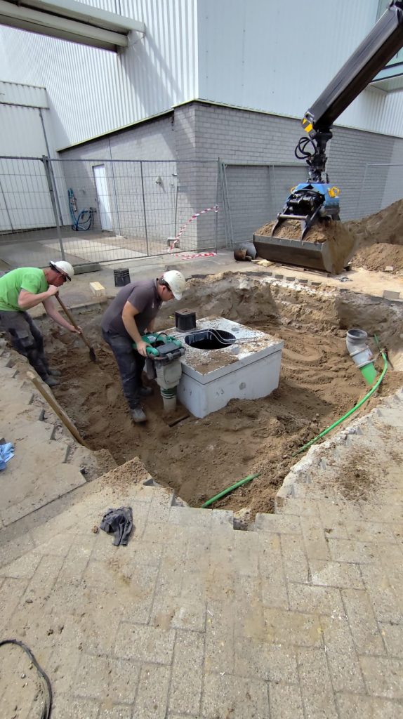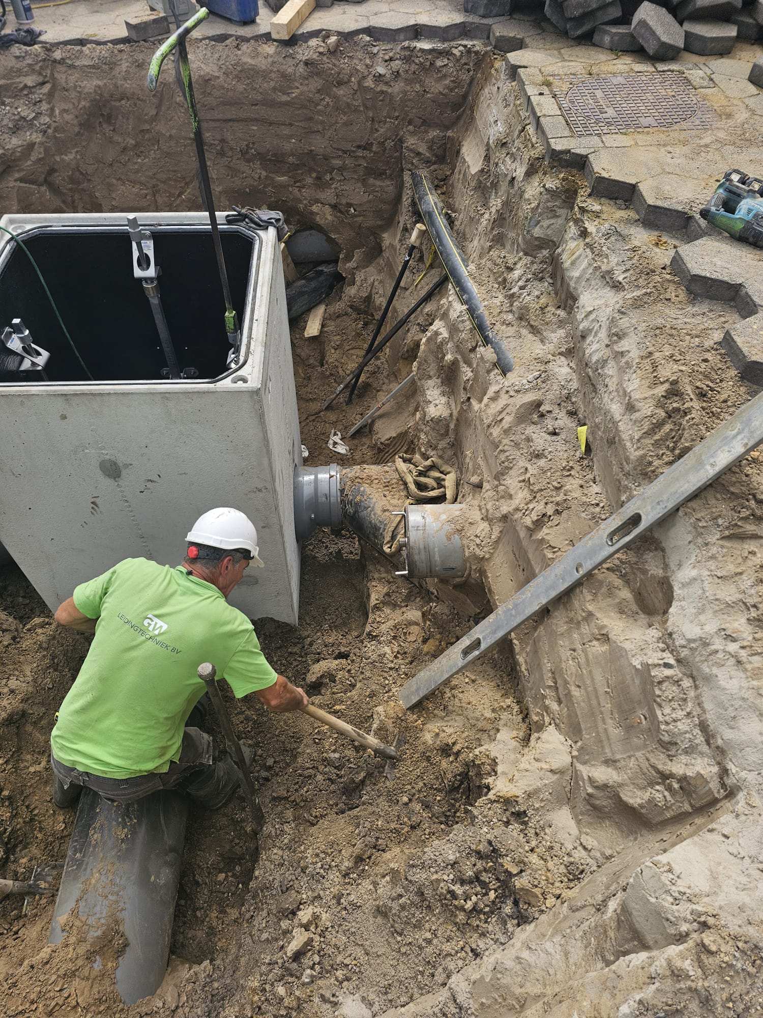 Ook dit werk begon met een gedegen voorbereiding. Op ons eigen terrein hebben we de verdeelput vooraf voorzien van een beschermende coating om de levensduur te verlengen. Ook zijn de schuifafsluiters en de zeef vooraf gemonteerd. Bij GNT zijn ook de nodige voorbereidingen getroffen, zoals het vrijgraven van de bestaande verdeelput en het in kaart brengen van het inkomende leidingwerk. Dankzij deze sterke voorbereiding konden we op zaterdag direct aan de slag. Op deze manier hebben we minimale overlast voor GNT gerealiseerd.